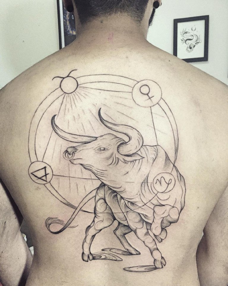 Значение тату с быком всегда было четким и ясным. Бык является воплощением мужского начала, но не только им, а еще и производительной мужской силы.