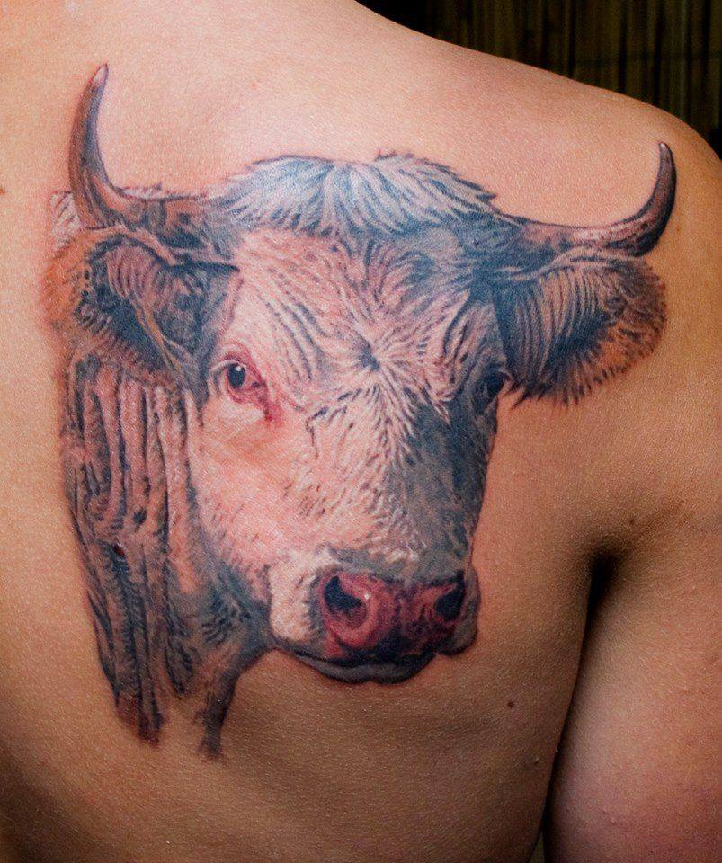 Бык является благородным и сильным животным. Чаще всего, в культурах разных стран, ему присущи те значения, которые связаны с богом и божественной силой. В качестве примера можно привести древнегреческую культуру и мифологию. Так, Зевс и Юпитер изображалась именно в виде быка. Такая татуировка являлась двойственной в вопросе смысловой нагрузки. С одной стороны, тату характеризовалось силой и могуществом, а с другой, было связано с любвеобильностью.