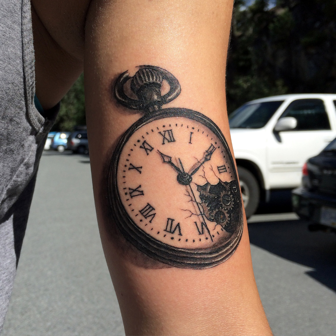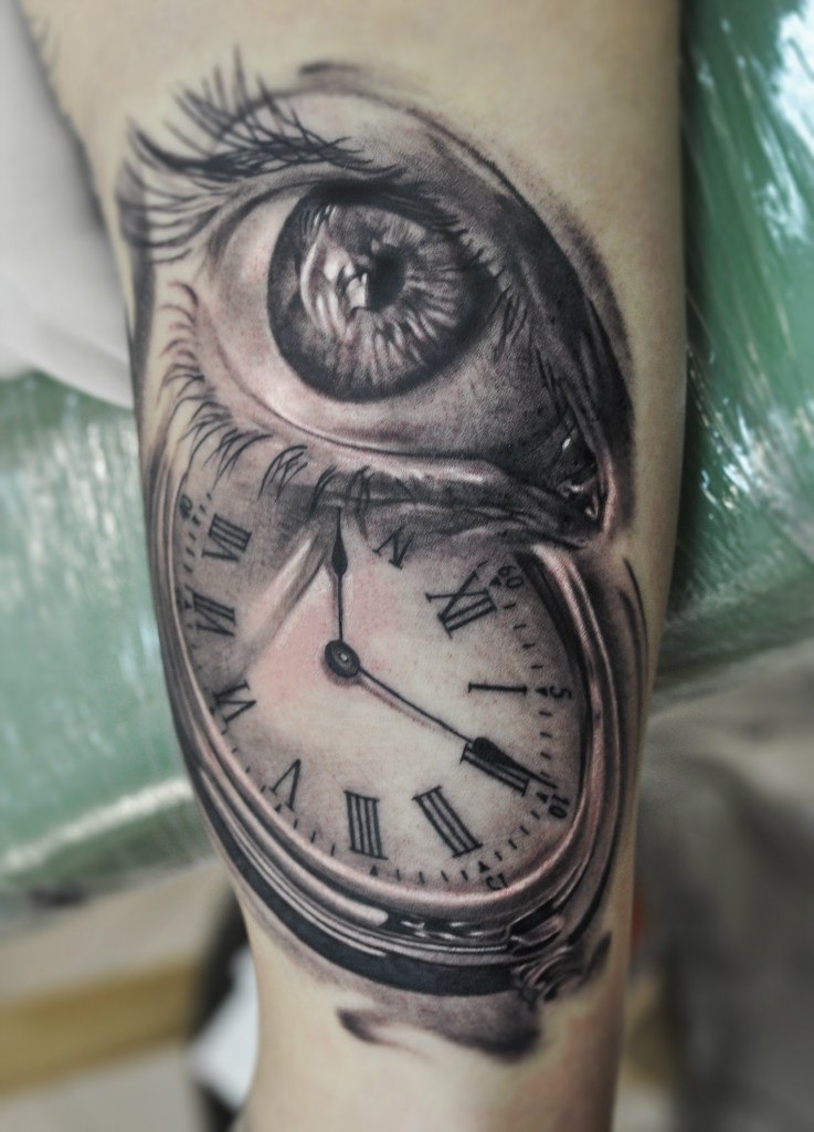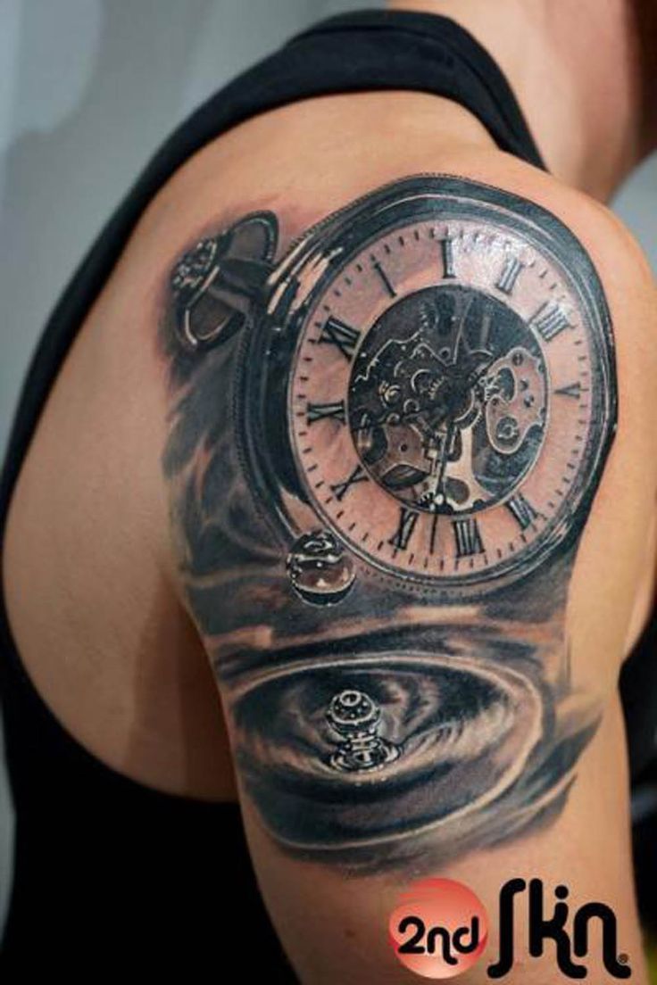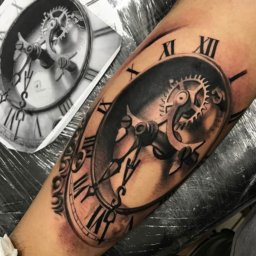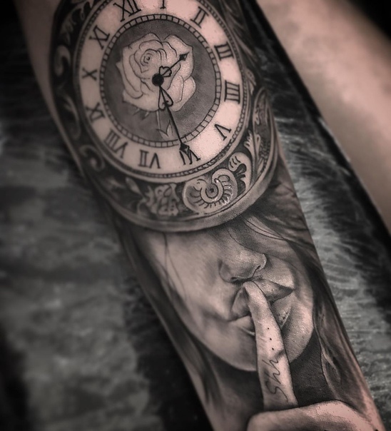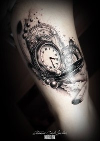 А ниже представлены фото татуировок с изображением часов от разных мастеров.