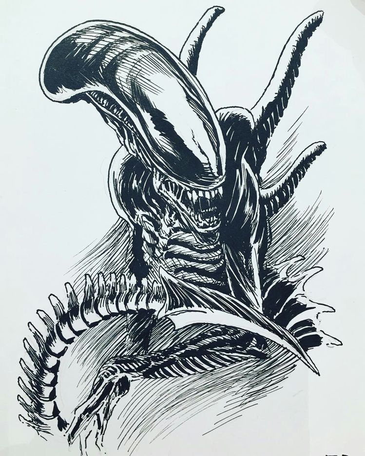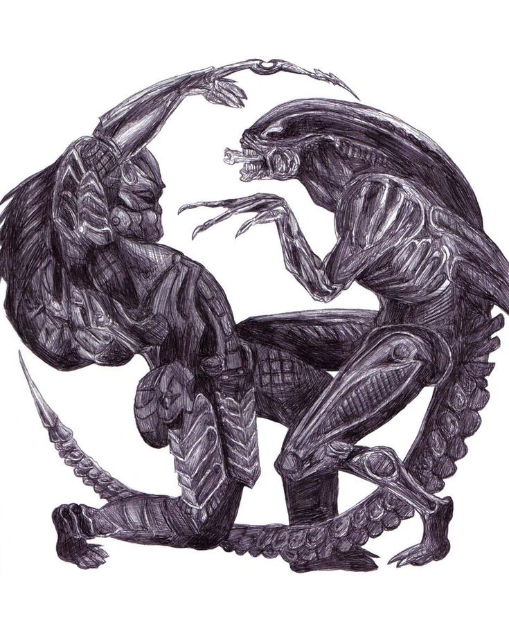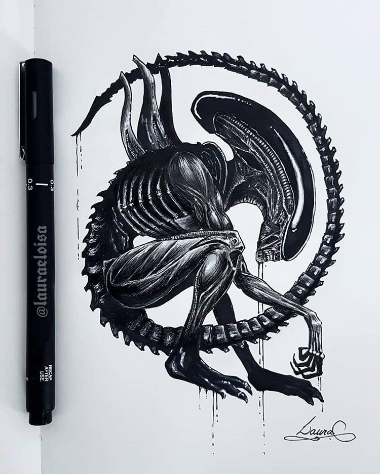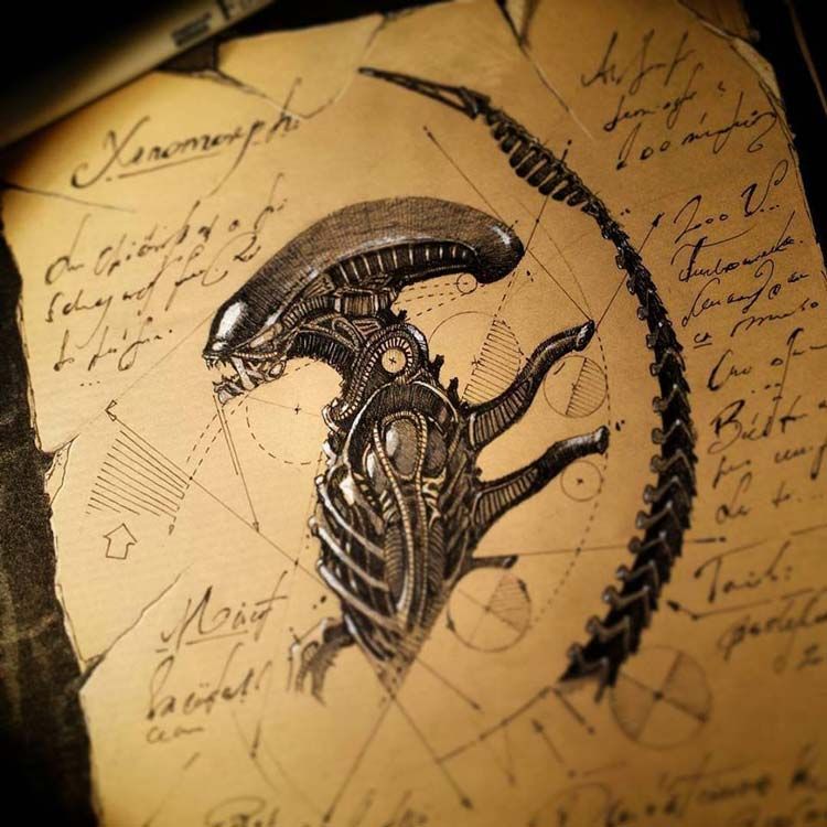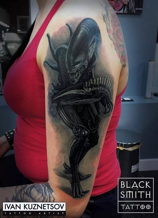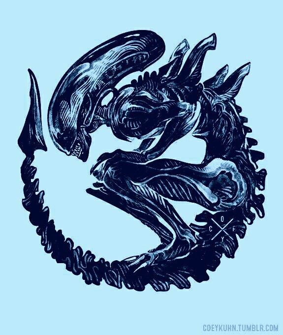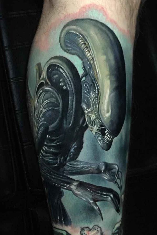 Источник: Instagram @paulsoultattooЭти дизайны вдохновлены вселенной фильма Чужой с использованием пришельцев из фильмов Прометей и Чужой . Поскольку первый инопланетный вид является предком второго, имеет смысл использовать их обоих в наборе татуировок. Закрученный дизайн делает их почти похожими на драконов и может ввести в заблуждение тех, кто не знаком с сюжетом фильма.