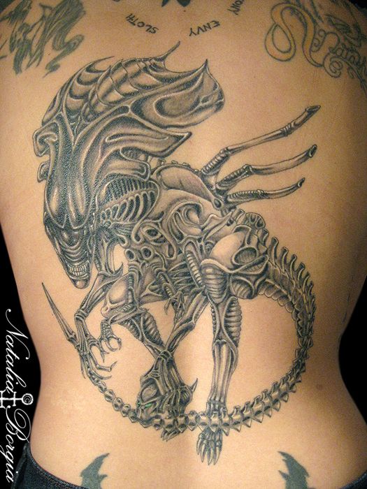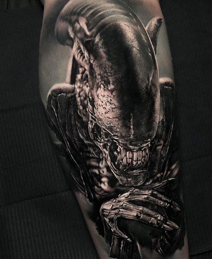 Детали в этом произведении потрясающие, показывая каждую морщинку на коже инопланетянина. В комплекте с устрашающим выражением лица, эта инопланетная татуировка будет преследовать вас во сне и закрадываться в ваши ночные кошмары.