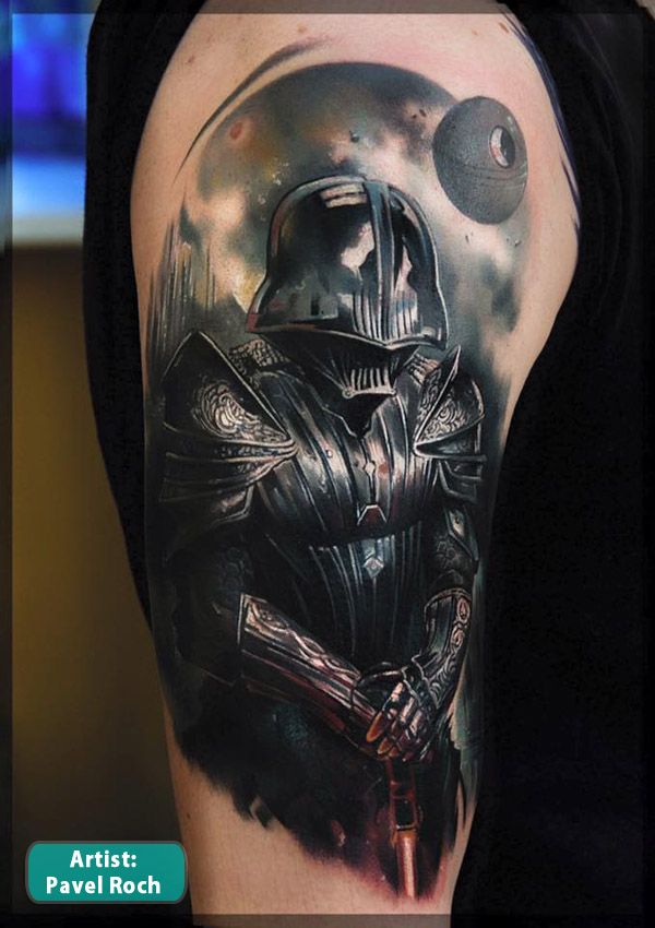 Татуировок с разными героями произведения огромное количество и Дарт Вейдер не исключение. Наносить их можно на любые части тела. Главное что бы они гармонично располагались на теле носителя рисунков.