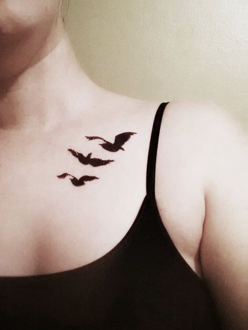 Татуировка ворона на Трис, главной героине историй, является наиболее часто встречающейся татуировкой Дивергента по ряду причин. Татуировка наносится на ключицу, а птицы летят вниз от плеча к груди. Вороны предназначены для почитания любимых, хотя в книгах Трис особо чтит трех членов своей семьи. Это может быть отличной татуировкой для всех, кто хочет показать свою любовь к своим семьям.