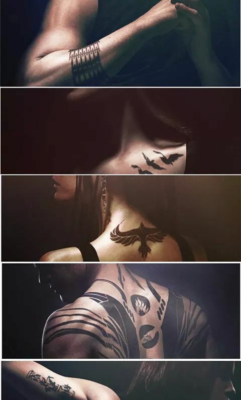 Реализм, форма искусства 18-го века, используется для гравировки этой татуировки. Символы фракций выглядят как фотографии или картины. Татуировки Тео Джеймса и Шейлин Вудли были временными татуировками, но эти татуировки выглядят более реальными, чем постоянные татуировки. Тату Три вороны Трис Дивергент символизирует память об отце, матери и брате. Птицы напоминают ему о его прошлой жизни с семьей. Шейлин Вудли, она же Трис, носит татуировку на шее. Слияние двух татуировок влияет на получение сказочной и смелой татуировки.