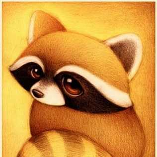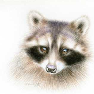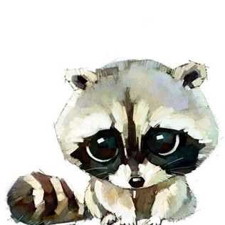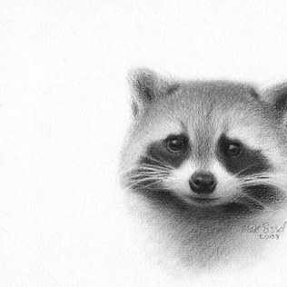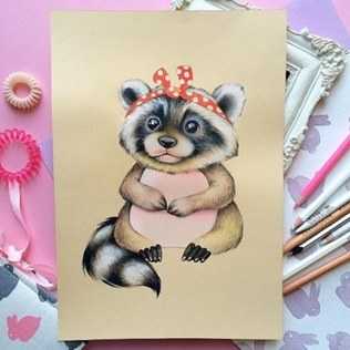 Сам енот имеет черно-белый окрас, именно в этой цветовой гамме его и изображают чаще всего. Однако, если Вы хотите добавить яркости – можно привнести разноцветные детали – выделить цветом глаза зверька, если енот в одежде (например, герой фильма или мультика), то раскрасить её – это сделает образ более жизнеутверждающим. Если же эскиз делается с фотографии реального енота, то в качестве цветовых акцентов можно добавить детали окружающей зверька природы – трава, деревья, листья, бабочки…