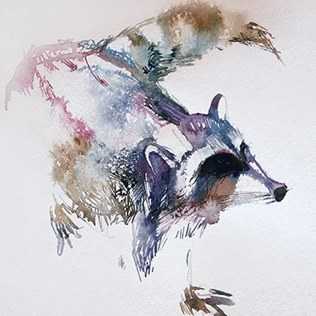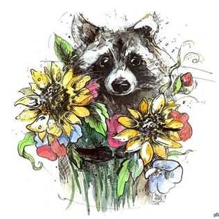 Еще один подходящий стиль — акварель, тату енот в нем будет выглядеть очень мило и ярко. Вовсе необязательно придерживаться палитры оттенков, которыми зверьков наделила природа, достаточно обозначить контуры, а раскрасить ночного воришку можно любыми цветами. Потеки и брызги краски выглядят очень эффектно и притягивают любопытные взгляды.