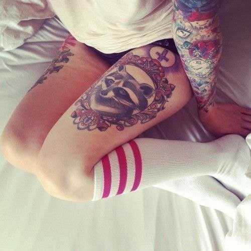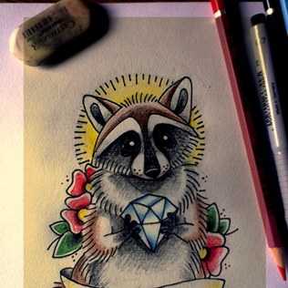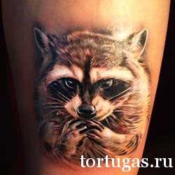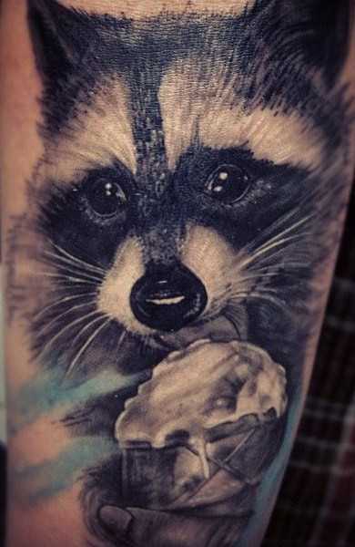 На сегодняшний день многие отдают предпочтение татуировкам с животными. Очень красиво смотрится на теле рисунок такого симпатичного зверька, как енот. Такая татуировка не слишком распространена и набивают ее редко, но это поможет вам еще больше выделиться из толпы.