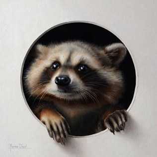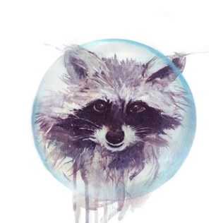 Интересно выглядят ночные зверьки в стиле дотворк. Шерсть енотов по природе окрашена в оттенки черного и белого, поэтому монохромный дотворк здесь очень кстати. Точки, нанесенные с разным интервалом, вполне способны отобразить переходы цвета. Часто такие работы украшает характерный орнамент.