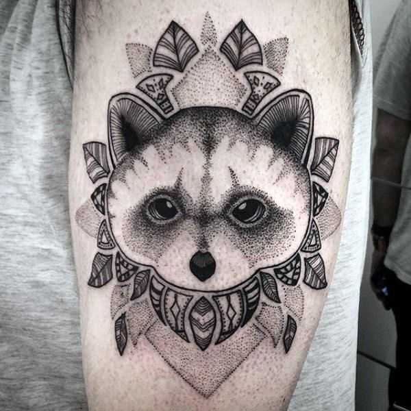Енот – одно из священных животных для культуры американских индейцев. Он входил в число тотемных животных индейцев и наделялся силами, способными защищать людей. Обычно такой рисунок наносится лишь на тело мужчин.