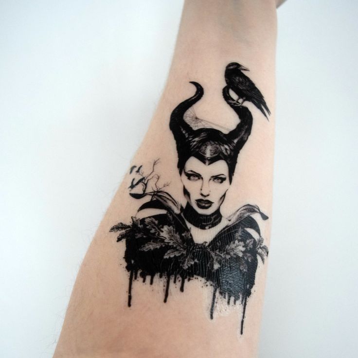 Идея татуировки Малефисента на запястье и рукеИсточник: @art.andink через Instagram