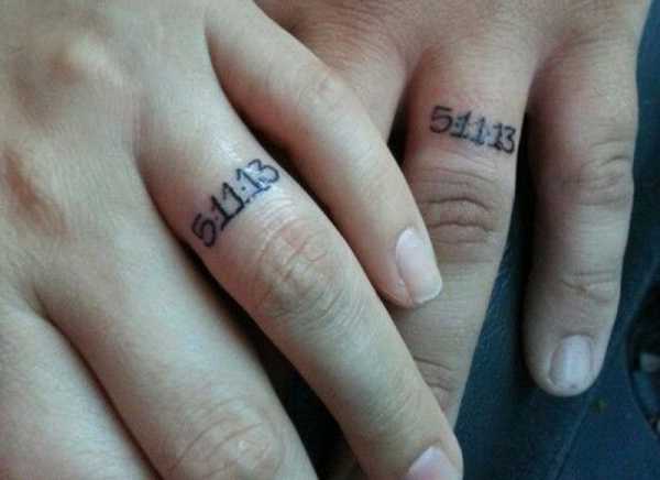 Современная молодежь наперебой выдумывает различные свадебные изыски на смену старым и устоявшимся. Одним из таких является обмен молодоженов кольцами. Многим не хочется носить металл на своем теле или просто не нравится вид украшения, поэтому они решаются сделать парные тату на правом безымянном пальце. Надо сказать, что такой вариант выглядит довольно интересно и необычно.
