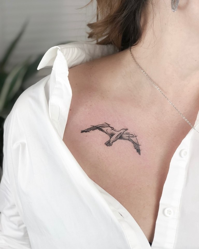 Птицы. Символ, олицетворяющий свободу и независимость – один из любимых и популярных у девушек. Обладательница такого тату на ключицах – мечтательная и романтичная особа.