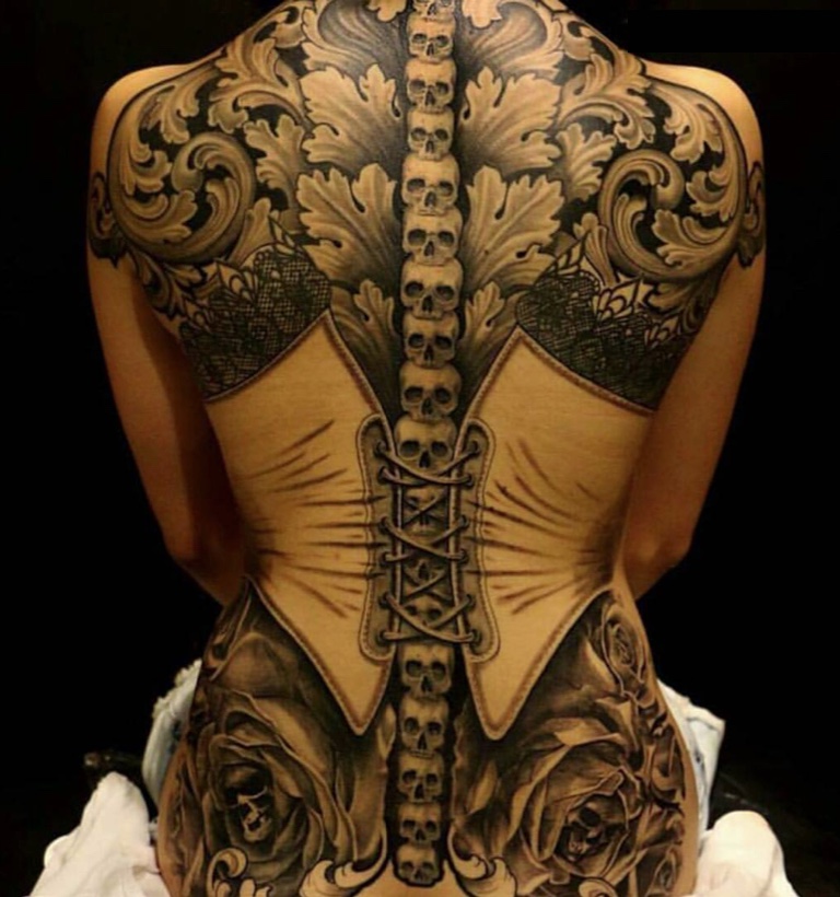 Трудно поверить, насколько реалистичен этот удивительно уникальный дизайн. Он пытается показать снятие корсетной внешности, чтобы раскрыть внутреннюю реальность. Это действительно великолепная татуировка на спине, которая наверняка поразит вас.