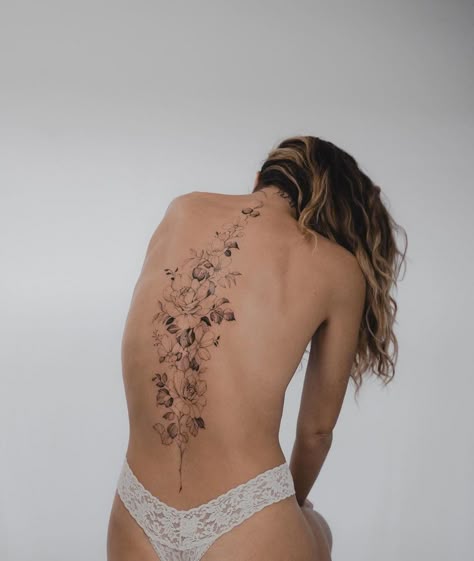 Захватывает дух! Не так ли? Изящная цветочная татуировка, покрывающая почти всю спину, добавляет даме элегантности.