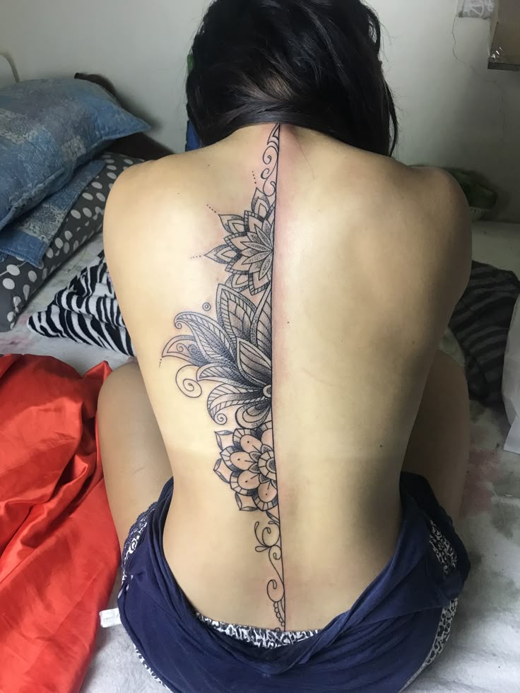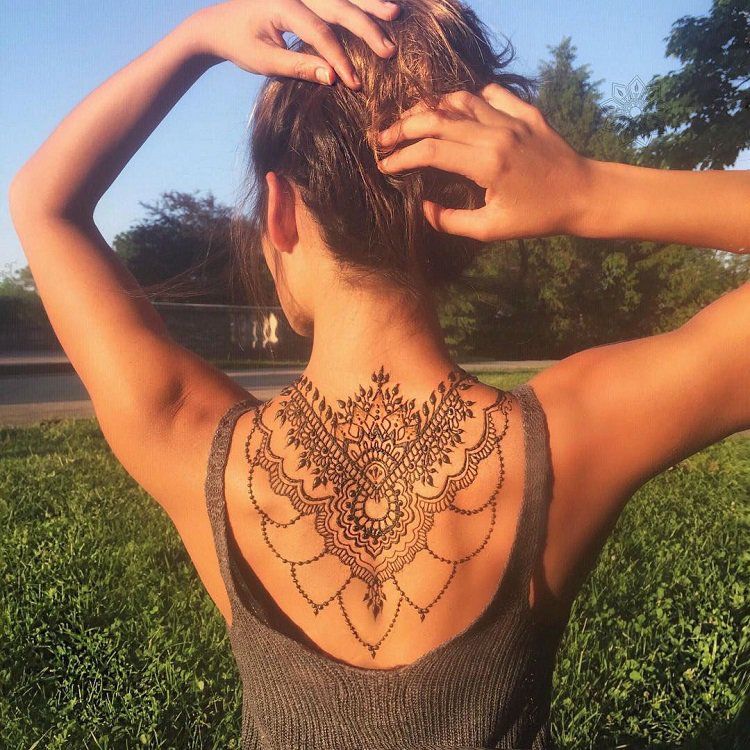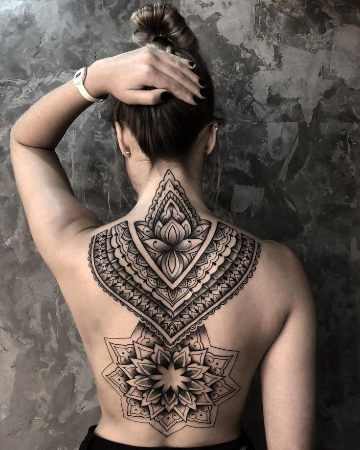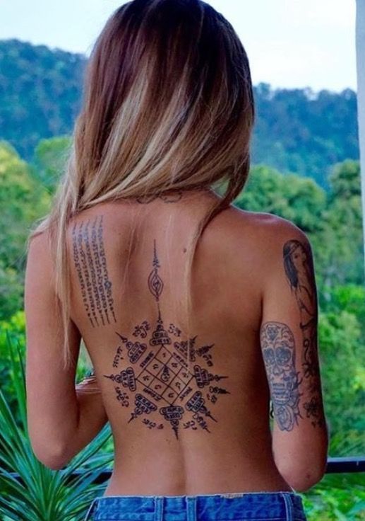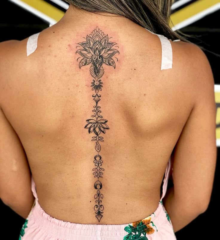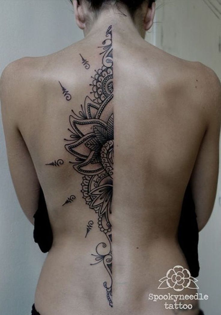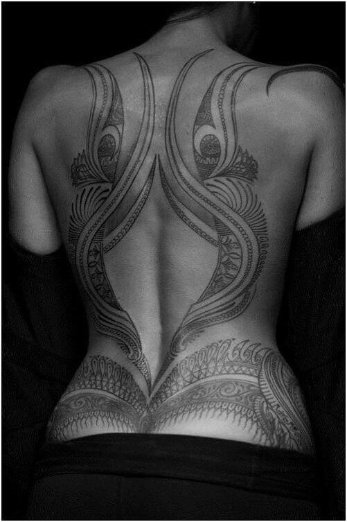 Ваша спина не обязательно должна что-то обозначать или иметь глубокий смысл. Он может быть и просто декоративным! Простой симметричный орнамент, подобный этому, может стать потрясающей татуировкой на спине для женщин.