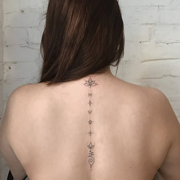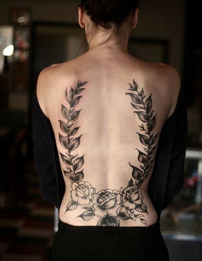 Самые распространенные изображения, которые делают на поверхности всей спины, — это древо жизни, цветочные композиции, змеи, драконы, птицы и другие животные. Конечно же, при выборе своей татуировки (Петербург) девушки обращаются к значениям символов, а потом уже думают о их красочном исполнении. - Тату вдоль позвоночника. Женщины выполняют такие татуировки: иероглифы, надписи, орнаментный рисунок, мелкие цветочки, звезды и другие знаки.