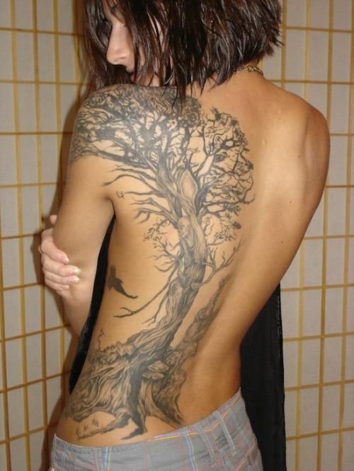 - Татуировки на всю спину. На такие тату отваживается не каждая девушка, так как на спине наносить тату больно. Только смелая и терпеливая особа может создать неповторимую картинку на своем теле.