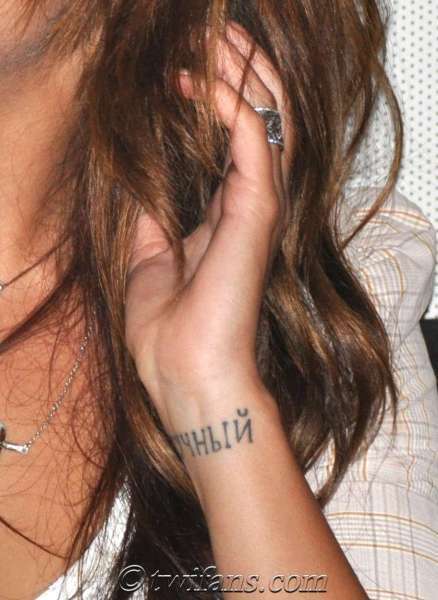 Татуировка на ее запястье выполнена на санскрите и означает цветок лотоса, который символизирует духовный рост. Можно сказать, что она живет своей правдой.