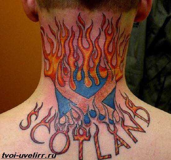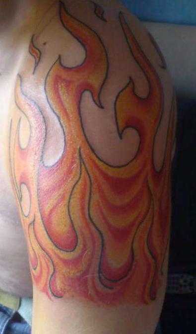 Некоторые люди не любят татуировки с огнем, а другие считают их совершенно фантастическими. Пламя это не просто статический рисунок, оно всегда бежит из одного места в другое. Мужчины любят делать тату с пламенем на руках или на запястьях. Рок-звезды сделали татуировки с пламенем очень популярными, дизайн с огнем (особенно череп с огнем) предпочитают настоящие любители рока. Многие имеют эти красивые и привлекательные рисунки, потому что с их помощью легко привлечь внимание. Маленькие тату с огнем довольно редкие, в основном это большие и красочные рисунки.