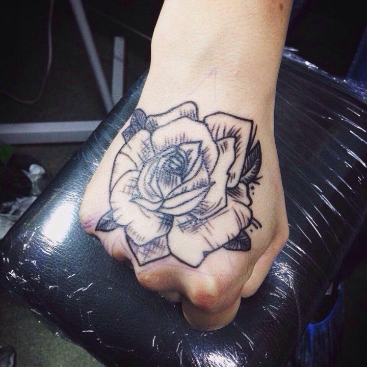 Татуировка – роза на запястье девушки
