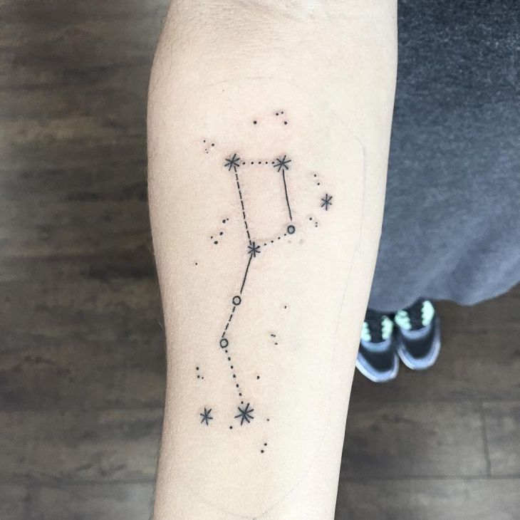Татуировка созвездия будет выглядеть потрясающе, если вы объедините ее в минималистическую татуировку, и именно это делает ее одним из самых предпочтительных способов выражения этой эмблемы.