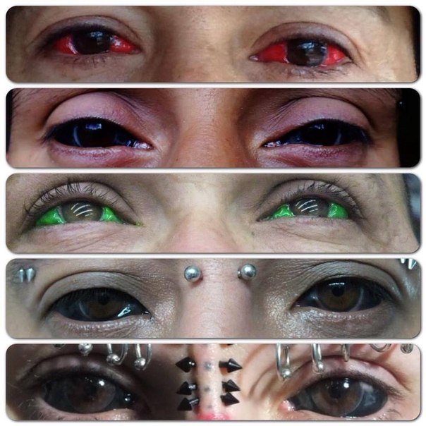 В США зарегистрированы случаи, когда для татуировки глаз были использованы чернила от принтера и автомобильная эмаль. Как вы можете догадаться, это плачевно закончилось для носителей этих татуировок.