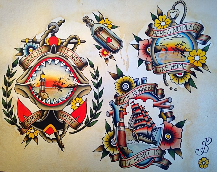 Изображения якорей, парусников, ласточек, русалок, ленточек с датами и именами являются распространёнными образами в данном стиле и пользуются огромной популярностью в наши дни.