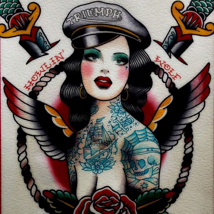 Татуировки в стиле олдскул характеризуются яркими и насыщенными цветами, толстыми контурами.