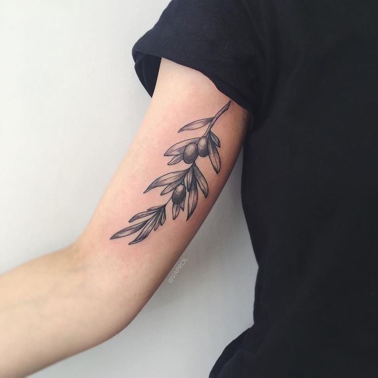 25. Татуировка с веткой. Нам нравится, когда татуировка выполнена идеально черным контуром, и этот рисунок с оливковой ветвью определенно один из таких!