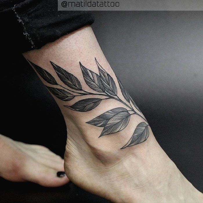 Оливковая ветвь на щиколотке выглядит просто потрясающе. Татуировщик отлично выполнил эффект затенения в татуировке, которая улучшает ее внешний вид.