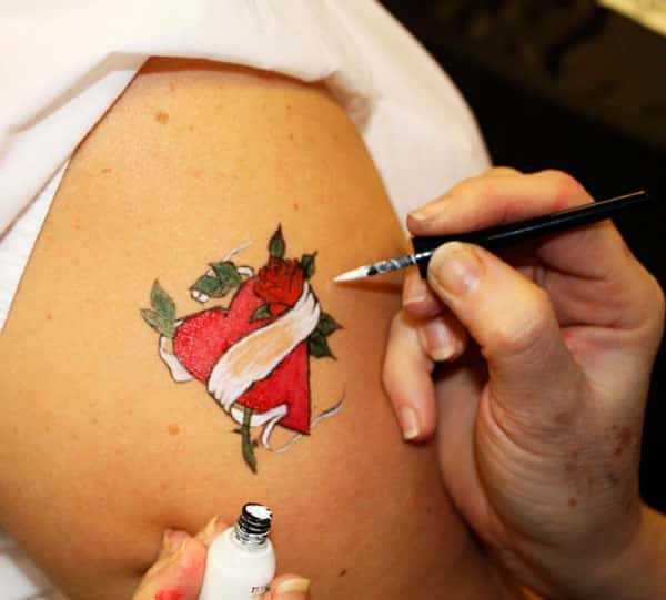 Когда речь идет об искусстве татуировке, отдельно стоит поговорить о временных тату, поскольку многих «начинающих» волнует этот животрепещущий вопрос: можно ли сделать тату на год? Ответим сразу: временных татуировок не существует в природе. Это могут быть рисунки на теле, выполненные с помощью биологического красителя (хна), блестки, которые держатся при помощи специального клея, даже рисунки, нанесенные с помощью аэрографа. В любом случае, если какой-то сомнительный мастер предлагает вам набить исчезающую татуировку, которая со временем пропадет — не верьте, не то со временем вам придется ходить с ужасным синим пятном на теле. Но давайте обо всем по порядку.