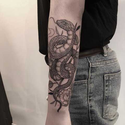 Π‘ΡΠΎΠΈΡ ΠΎΡΠΌΠ΅ΡΠΈΡΡ, ΡΡΠΎ ΡΠ°ΠΊΠΎΠΉ ΡΠΈΡΡΠ½ΠΎΠΊ ΠΏΠΎΠ΄ΠΎΠΉΠ΄Π΅Ρ ΠΈ Π΄Π΅Π²ΡΡΠΊΠ°ΠΌ, ΠΈ ΠΏΠ°ΡΠ½ΡΠΌ. Π ΡΠΈΠΌΠ²ΠΎΠ»ΠΈΠ·ΠΈΡΡΠ΅Ρ Π·ΠΌΠ΅Ρ Π²Π»Π°ΡΡΡ Π²ΠΎ Π²ΡΠ΅Ρ Π΅Π΅ ΠΏΡΠΎΡΠ²Π»Π΅Π½ΠΈΡΡ . ΠΡΡΠ°ΡΠΈ, ΡΡΠΎ ΠΏΠΎΡΠ»ΠΎ Ρ ΠΠ°ΠΏΠ°Π΄Π°. ΠΠΌΠ΅Π½Π½ΠΎ ΡΠ°ΠΌ ΡΠ΅ΠΏΡΠΈΠ»ΠΈΡ ΡΡΠΈΡΠ°Π»Π°ΡΡ ΡΠΈΠΌΠ²ΠΎΠ»ΠΎΠΌ ΠΆΠ΅Π½ΡΠΊΠΎΠ³ΠΎ ΠΌΠΎΠ³ΡΡΠ΅ΡΡΠ²Π° ΠΈ ΡΠ»Π°Π΄ΠΎΡΡΡΠ°ΡΡΠΈΡ. ΠΠΎΡΠΎΠΌΡ-ΡΠΎ ΡΡΠΎΠ»Ρ ΠΏΠΎΠΏΡΠ»ΡΡΠ½Π° ΡΠ°ΡΡΠΈΡΠΎΠ²ΠΊΠ° Π΅Π΅ Π² ΡΠΎΡΠ΅ΡΠ°Π½ΠΈΠΈ Ρ ΠΈΠ·ΠΎΠ±ΡΠ°ΠΆΠ΅Π½ΠΈΠ΅ΠΌ ΠΠ΄Π°ΠΌΠ° ΠΈ ΠΠ²Ρ. ΠΠΎ ΡΠ΅ΠΌ ΠΆΠ΅ ΡΠ°ΠΊ ΠΏΡΠΈΠ²Π»Π΅ΠΊΠ°ΡΠ΅Π»Π΅Π½ ΡΡΠΎΡ ΡΠΈΡΡΠ½ΠΎΠΊ? ΠΡΠ΅ ΠΏΡΠΎΡΡΠΎ – Π·ΠΌΠ΅Ρ ΠΌΠΎΠΆΠ½ΠΎ ΡΠΎΠ²ΠΌΠ΅ΡΡΠΈΡΡ Ρ Π°Π±ΡΠΎΠ»ΡΡΠ½ΠΎ Π»ΡΠ±ΡΠΌ ΡΡΠΆΠ΅ΡΠΎΠΌ. Π Π΅ΡΠ΅ ΡΠΎΠ»ΡΠΊΠΎ ΡΡΠΎ ΡΠ°ΡΡ ΡΠΏΠΎΡΠΎΠ±Π½ΠΎ ΡΠ°ΠΌΡΠΌ Π²ΡΠ³ΠΎΠ΄Π½ΡΠΌ ΠΎΠ±ΡΠ°Π·ΠΎΠΌ ΠΏΠΎΠ΄ΡΠ΅ΡΠΊΠ½ΡΡΡ Π²ΡΠ΅ ΠΈΠ·Π³ΠΈΠ±Ρ ΡΠΈΠ³ΡΡΡ. Π’Π°ΡΡΠΈΡΠΎΠ²ΠΊΠ° Π·ΠΌΠ΅ΠΈ Π½Π° ΡΡΠΊΠ΅ Π·Π½Π°ΡΠ΅Π½ΠΈΠ΅ ΠΈΠΌΠ΅Π΅Ρ ΡΠΎ ΠΆΠ΅, ΡΡΠΎ ΠΈ Π½Π° Π»ΡΠ±ΠΎΠΉ Π΄ΡΡΠ³ΠΎΠΉ ΡΠ°ΡΡΠΈ ΡΠ΅Π»Π°. ΠΠΎ ΠΊΠ°ΠΊ ΡΠ΅ΠΊΡΡΠ°Π»ΡΠ½ΠΎ ΠΈ Π½Π΅Π²Π΅ΡΠΎΡΡΠ½ΠΎ ΡΡΡΠ΅ΠΊΡΠ½ΠΎ ΠΎΠ½Π° ΡΠΌΠΎΡΡΠΈΡΡΡ! ΠΠΎΠΆΠ΅Ρ ΠΏΠΎΡΠΎΠΌΡ ΠΆΠ΅Π½ΡΠΈΠ½Ρ ΡΡΠΎΠ»Ρ ΡΠ°ΡΡΠΎ ΠΏΡΠ΅Π΄ΠΏΠΎΡΠΈΡΠ°ΡΡ ΠΈΠΌΠ΅Π½Π½ΠΎ ΡΡΠΎΡ Π²ΠΈΠ΄ ΡΠΈΡΡΠ½ΠΊΠ°.