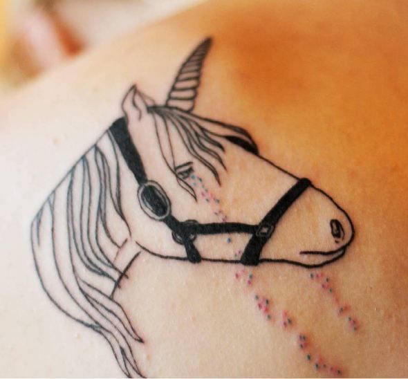Когда вы думаете о татуировках с мультяшным единорогом, на ум сразу приходят кадры из фильмов «Мой маленький пони» и «Последний единорог» (1982).
