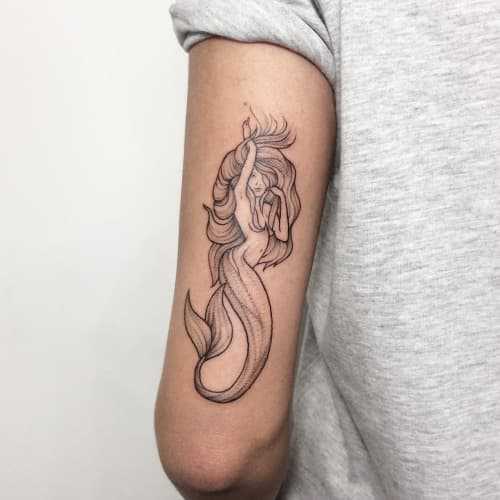 В этом материале мы постараемся раскрыть для вас значение тату русалка, смысл и историю этого рисунка татуировки. Для тех, кто уже подыскивает эскиз или идею для татуировки с русалкой, перед тем как отправиться в салон татуировки и сделать ее себе, предлагаем познакомиться с примерами: