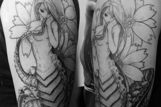 Еще один совет: отводите под татуировку русалки большой участок тела, так как данный рисунок будет выглядеть эффектно лишь с изображением деталей. А это возможно только на крупном свободном пространстве.