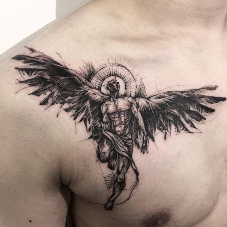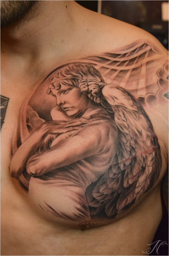 Тату ангела на груди для мужчин