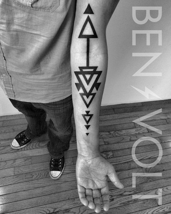 Подчеркивают мужественность и силу. Наиболее распространенный вид тату среди мужчин «рукав». Самые красивые представляют собой сплошной рисунок, занимающий всю окружность конечности. Они могут быть расположены от плеча до запястья или локтя, от последнего до кисти, а также забита, может быть, половина плеча. Татуированная роспись, выполненная в любом стиле, подчеркивает мускульную рельефность. Очень часто на предплечье рисуют образы людей, наносят текст и разные символы.