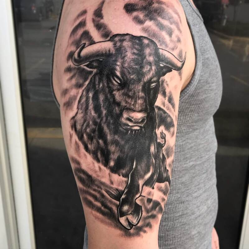 А ниже представлены фото татуировок с изображением быка от разных мастеров.