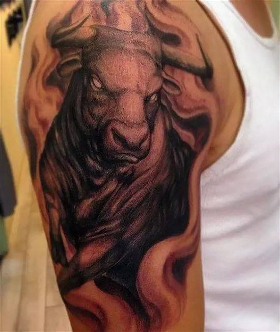 Татуировка быка может означать отвагу, силу, плодовитость, воскресение, безопасность, мощь, агрессивность, настойчивость, безрассудство.