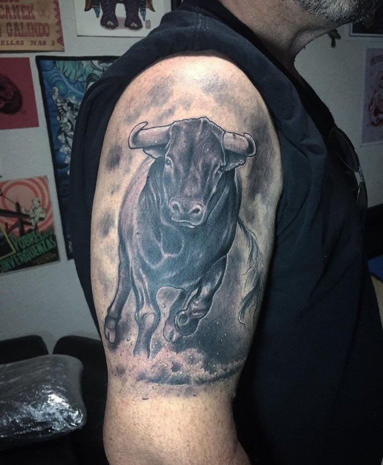 У меня уже есть несколько татуировок. Однако я хотел найти ту, которая преуменьшит мою смелость. Я выбрал образ быка. Мне понравился результат!