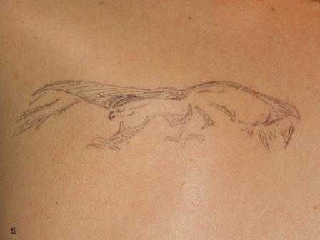 Пошаговое выполнение хной рисунка татуировки Орел на теле: