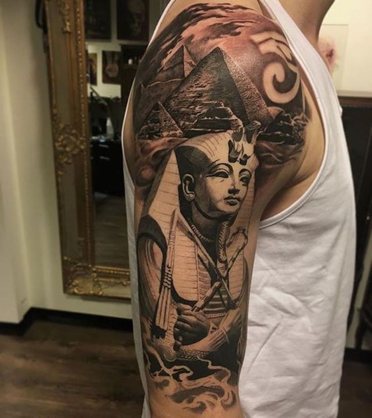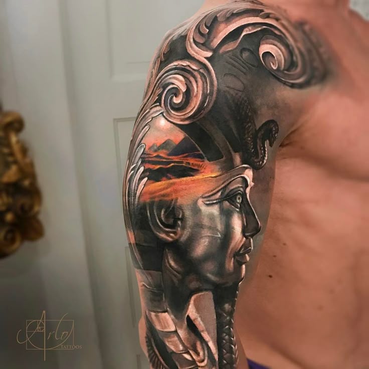 Египетские татуировки на рукавах — это популярный дизайн татуировки, в котором вся рука используется как холст для изучения татуировок, посвященных Древнему Египту и египетским стилям.