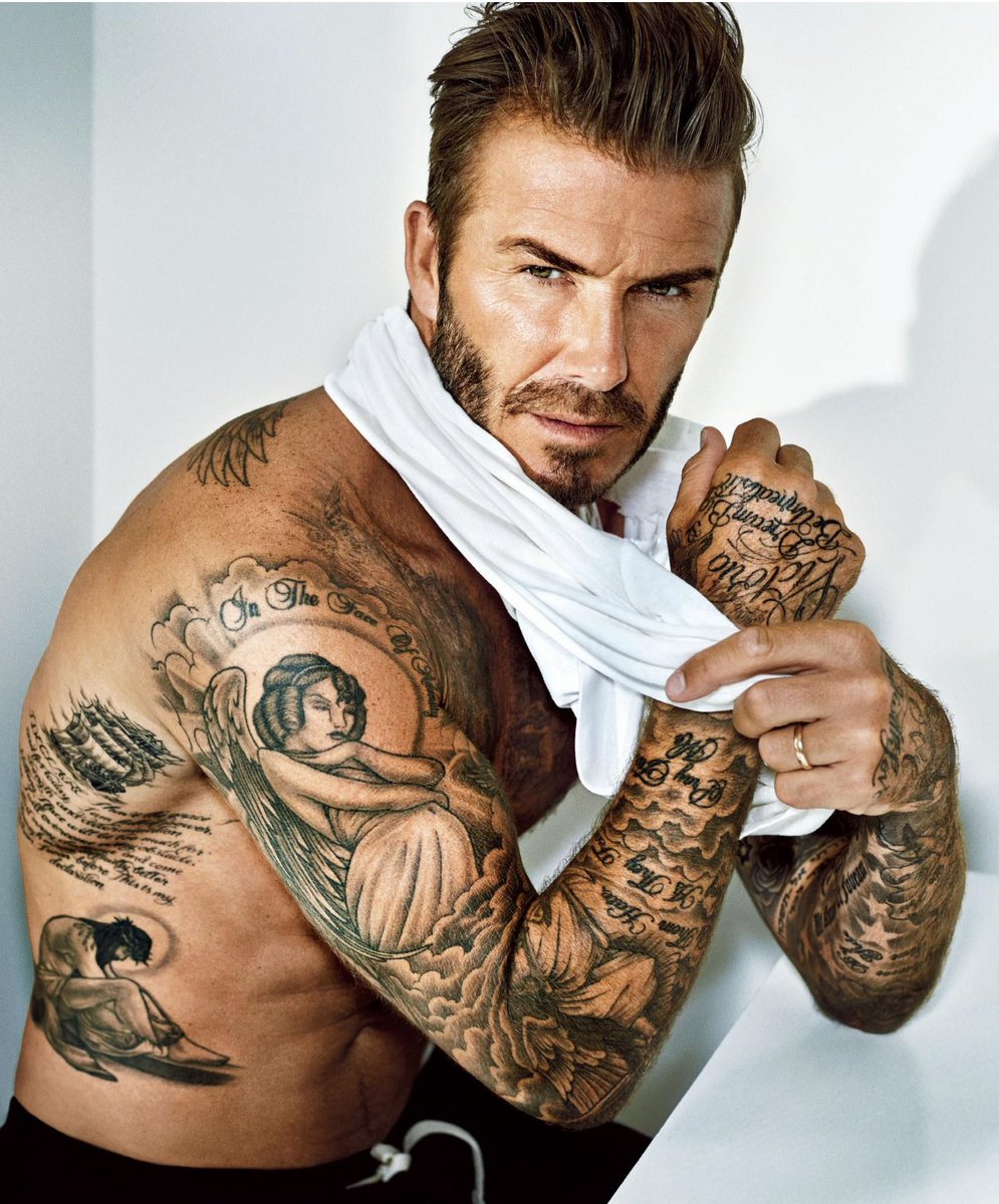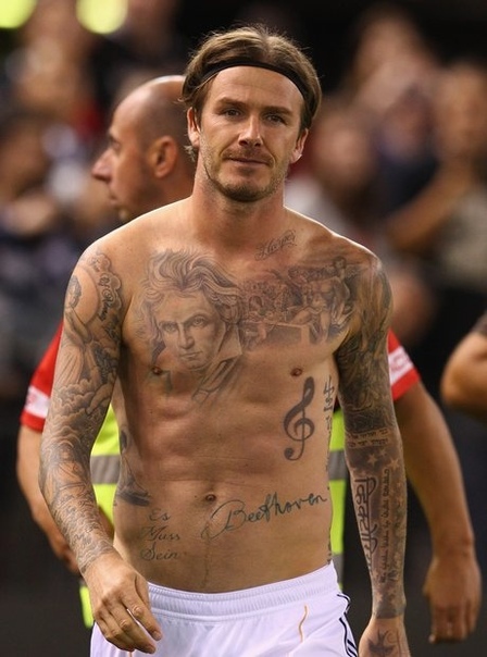 Джоли не единственная, кто посвятил свои тату детям, есть еще такой Дэвид Бекхем. После свадьбы на Виктории Спайс, футболист первым делом вытатуировал ее имя.