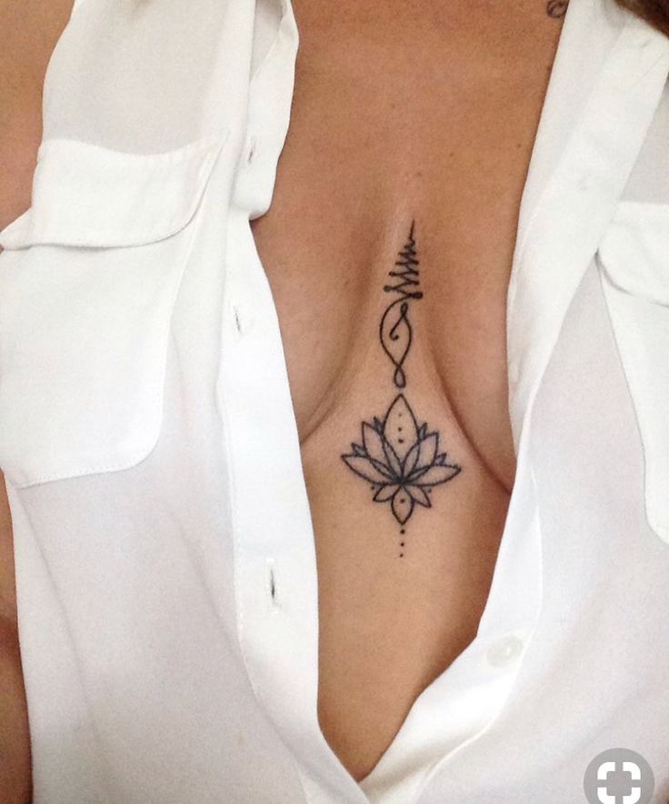 Хотя это может показаться простым, на груди оно выглядит потрясающе привлекательно. Эта татуировка подходит для женщин любого возраста, ее можно демонстрировать на любом наряде.