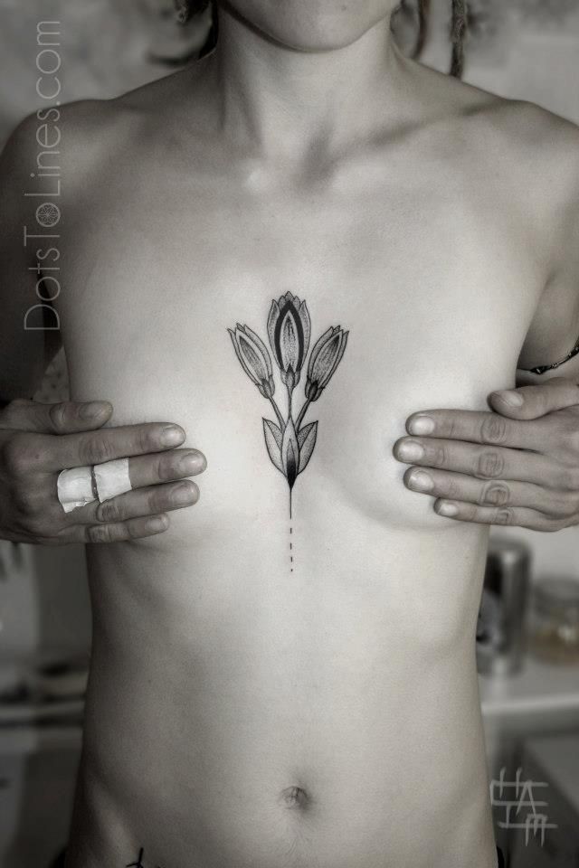 «На самом деле, некоторые люди даже утверждают, что грудина — одно из самых болезненных мест для татуировки. Кроме того, нанесение татуировки на чувствительные участки требует много времени, потому что этот тип татуировки требует высокой точности».