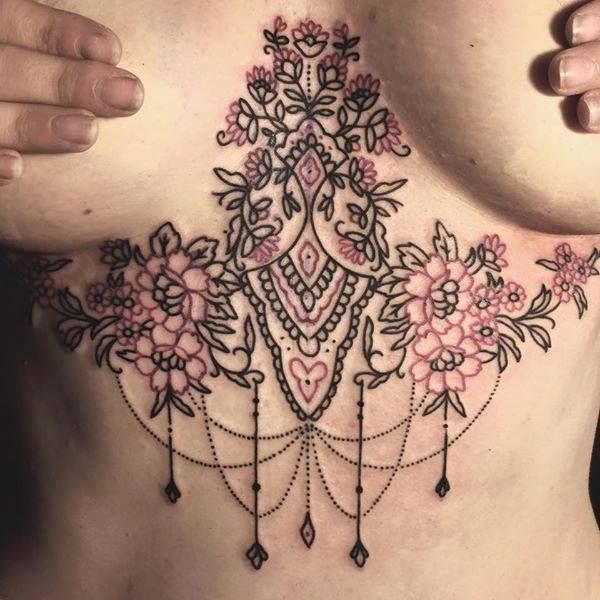 Некоторые девушки используют тату под грудью, чтобы скрыть шрамы или рубцы после операций.