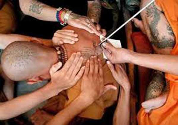 Тайские татуировки Сак могут сделать только монахи. Они владеют тайной чтения знаков и составления смысловых конструкций для передачи определенных знаний и связи с Высшими Силами.