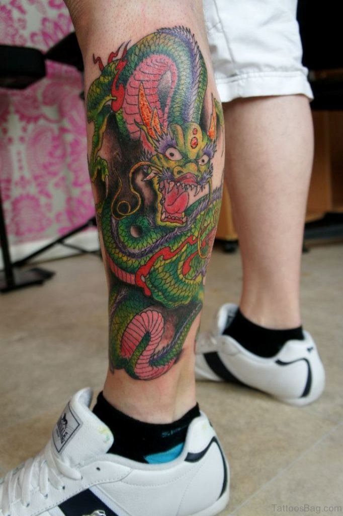 Еще один интересный вариант тату на икре для мужчин — татуировка дракон. Дракона можно изобразить не только в традиционном японском стиле, но и во множестве других.