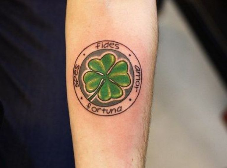 Клевер-четырехлистник символизирует любовь, удачу, веру и надежду. Считается, что тот, кто найдет клевер с четырьмя листиками, обретет счастье, поэтому тату наносят, чтобы привлечь удачу в жизнь.