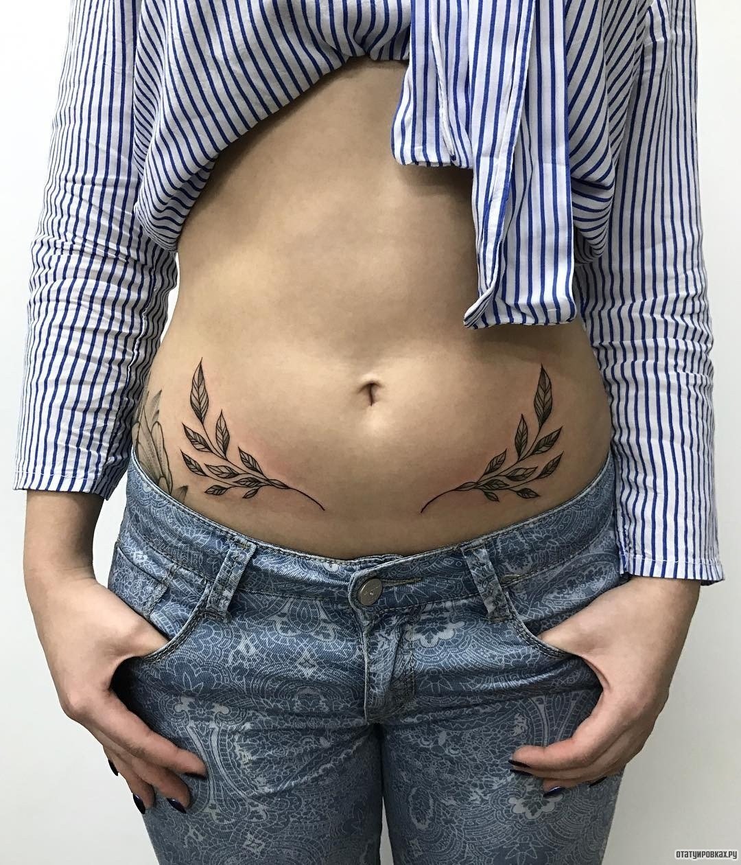 С помощью тату внизу живота, по его бокам, принято скрывать и растяжки.